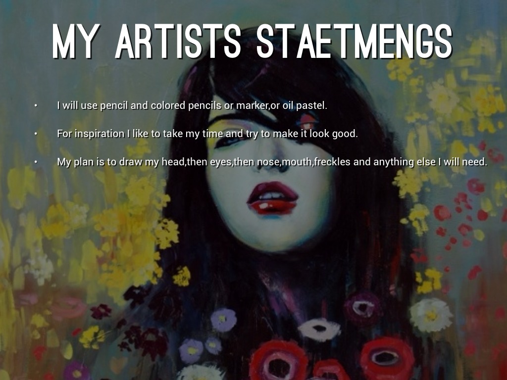 My plan is to draw my head,then eyes,then nose,mouth,freckles and anything else I will need.
