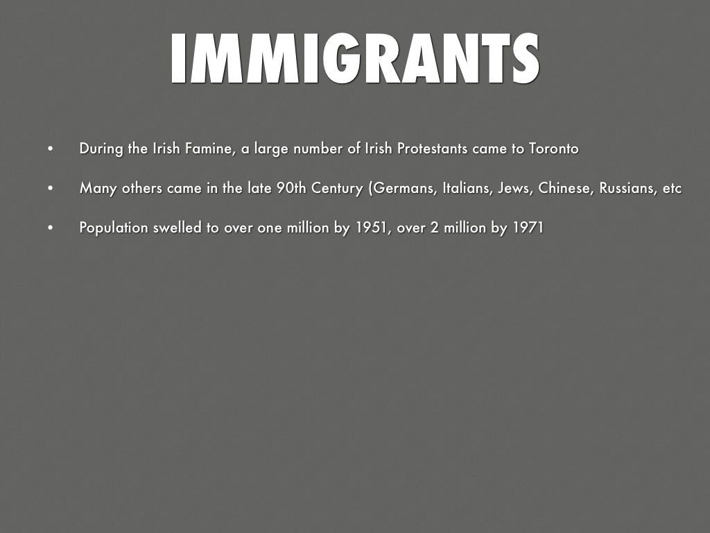 During the Irish Famine, a large number of Irish Protestants came to Toronto