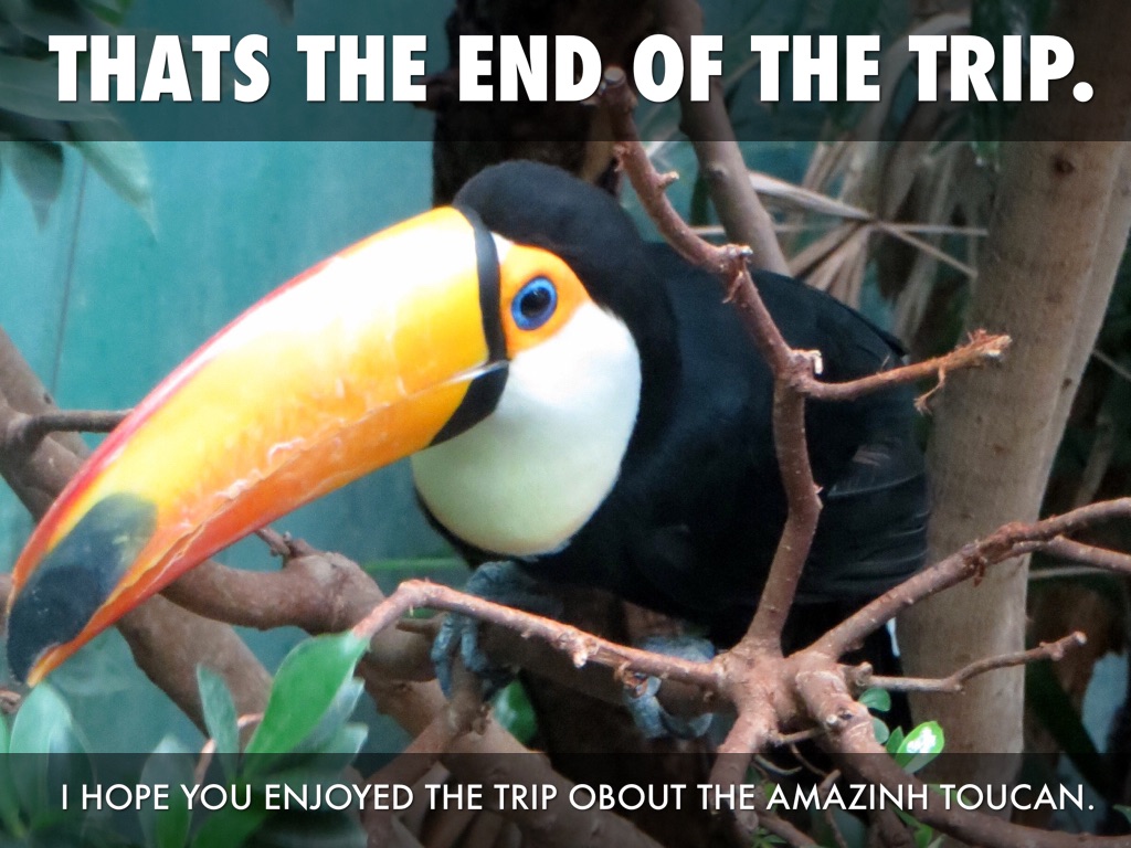 I HOPE YOU ENJOYED THE TRIP OBOUT THE AMAZINH TOUCAN.