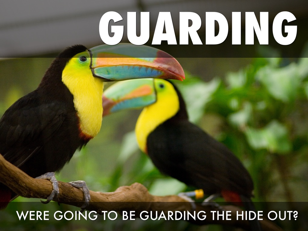 WERE GOING TO BE GUARDING THE HIDE OUT?