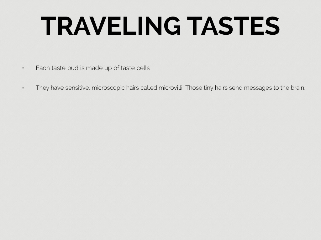 • They have sensitive, microscopic hairs called microvilli Those tiny hairs send messages to the brain.