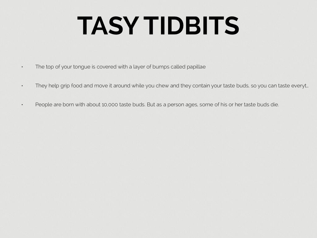 • They help grip food and move it around while you chew and they contain your taste buds, so you can taste everything
