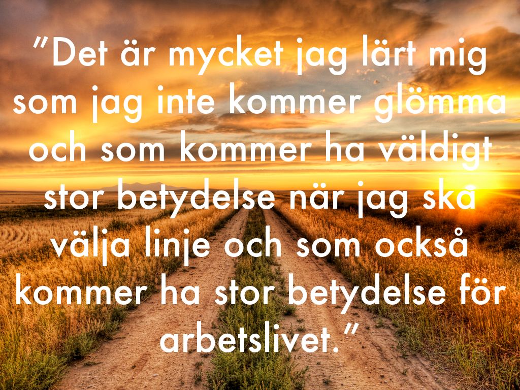 ”Det är mycket jag lärt mig som jag inte kommer glömma och som kommer ha väldigt stor betydelse när jag ska välja linje och som också kommer ha stor betydelse för arbetslivet.”