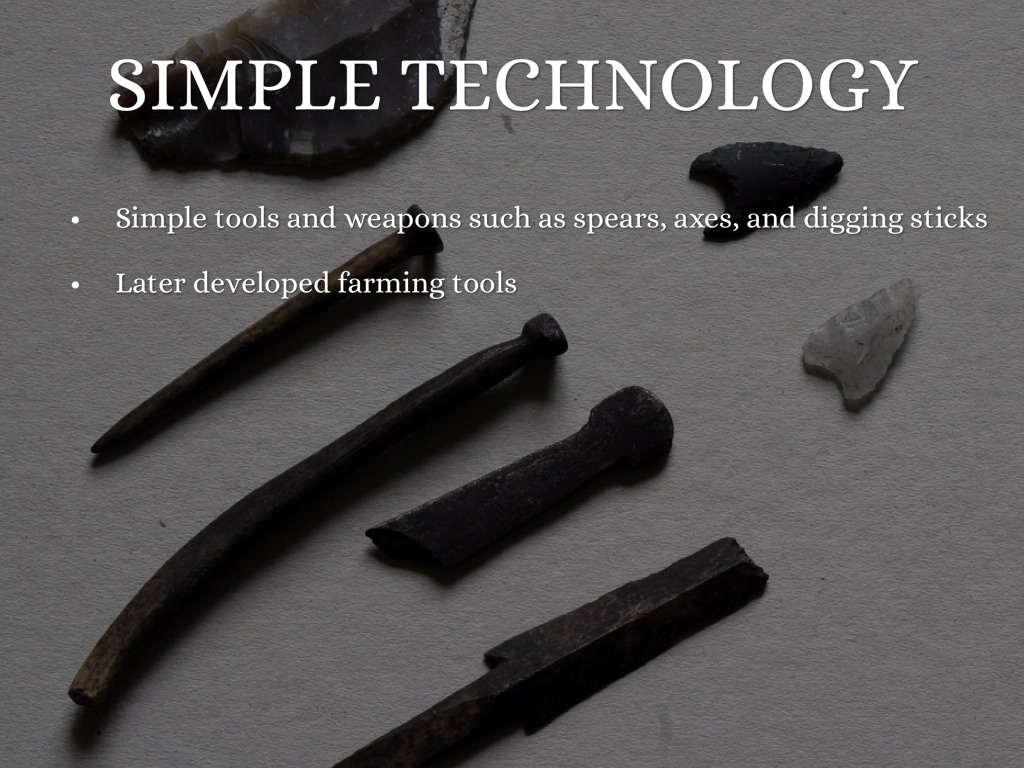 Simple tools and weapons such as spears, axes, and digging sticks