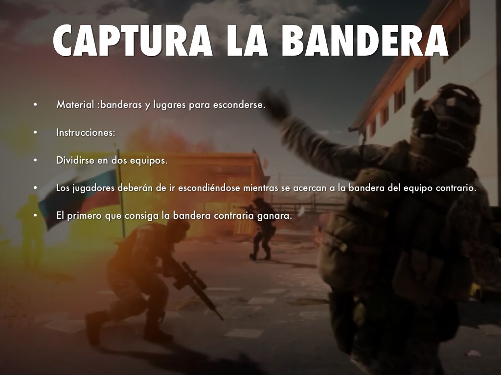 Los jugadores deberán de ir escondiéndose mientras se acercan a la bandera del equipo contrario.