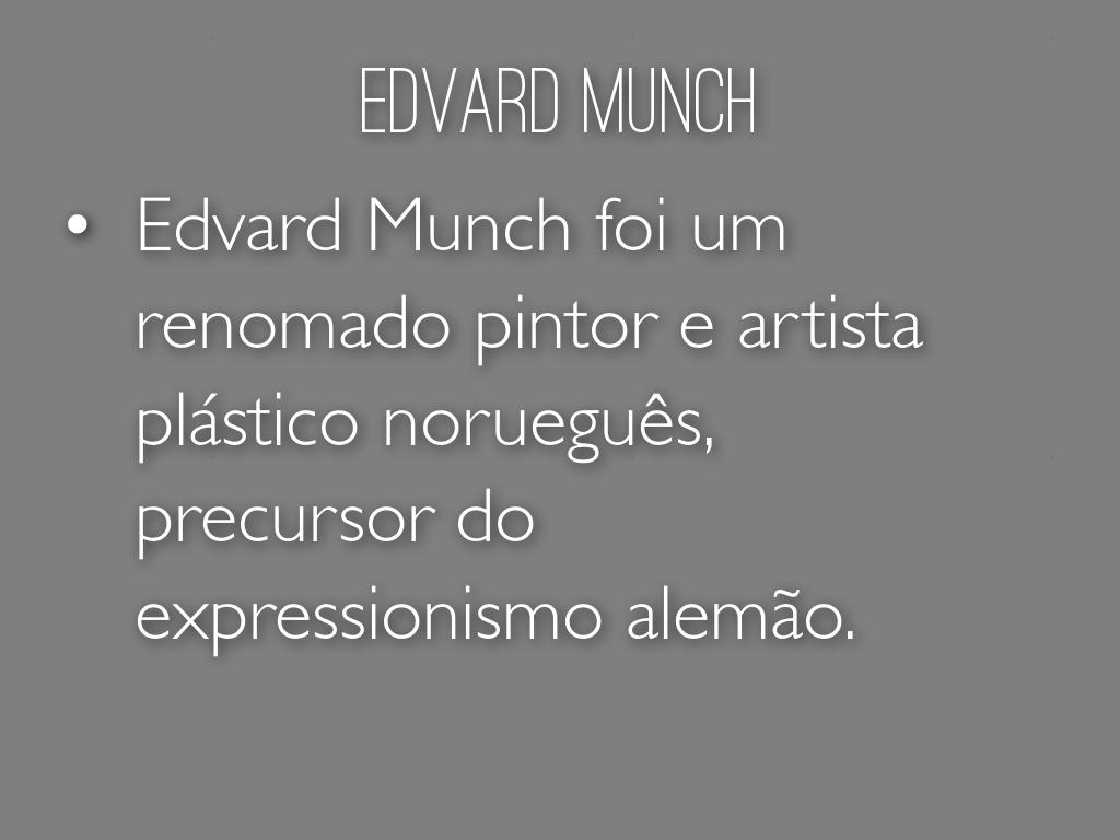 • Edvard Munch foi um renomado pintor e artista plástico norueguês, precursor do expressionismo alemão.