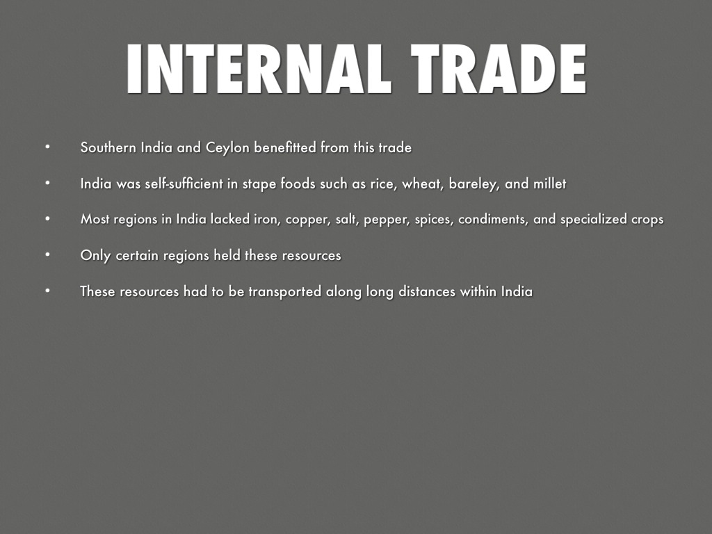 - Most regions in India lacked iron, copper, salt, pepper, spices, condiments, and specialized crops