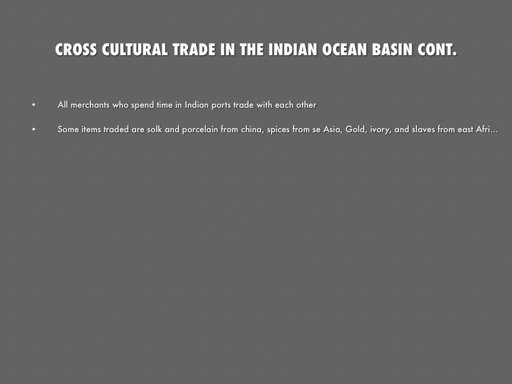 CROSS CULTURAL TRADE IN THE INDIAN OCEAN BASIN Cont.
