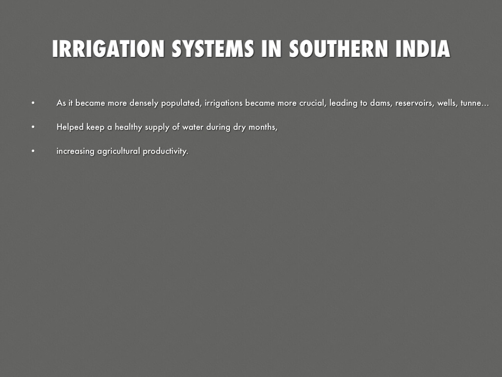 - As it became more densely populated, irrigations became more crucial, leading to dams, reservoirs, wells, tunnels, etc.( impressive and monumental at the time )
