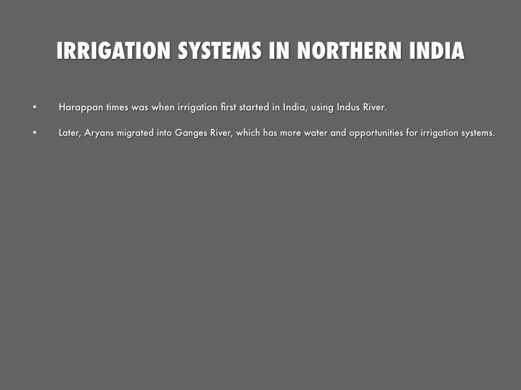 - Later, Aryans migrated into Ganges River, which has more water and opportunities for irrigation systems.