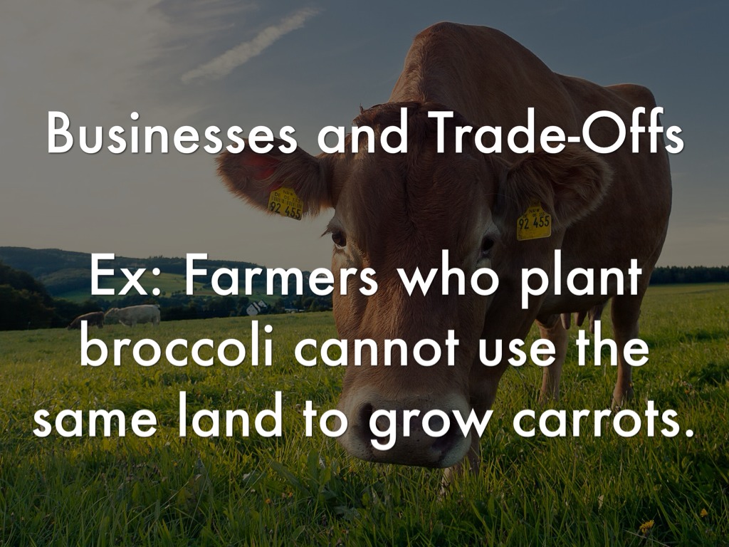 Ex: Farmers who plant broccoli cannot use the same land to grow carrots.
