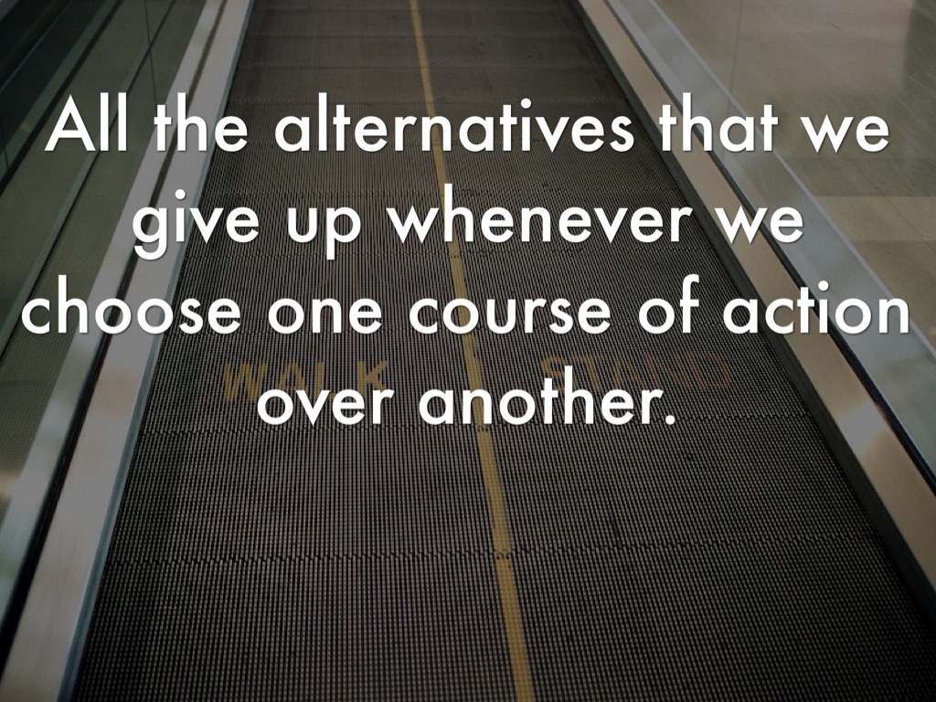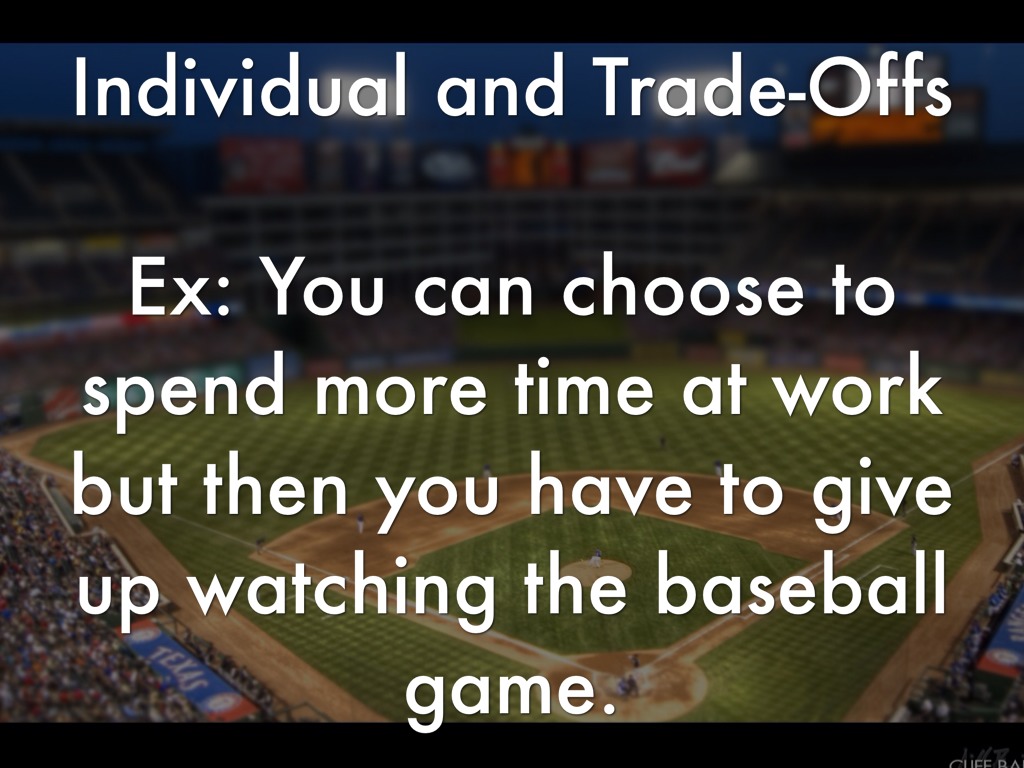 Ex: You can choose to spend more time at work but then you have to give up watching the baseball game.