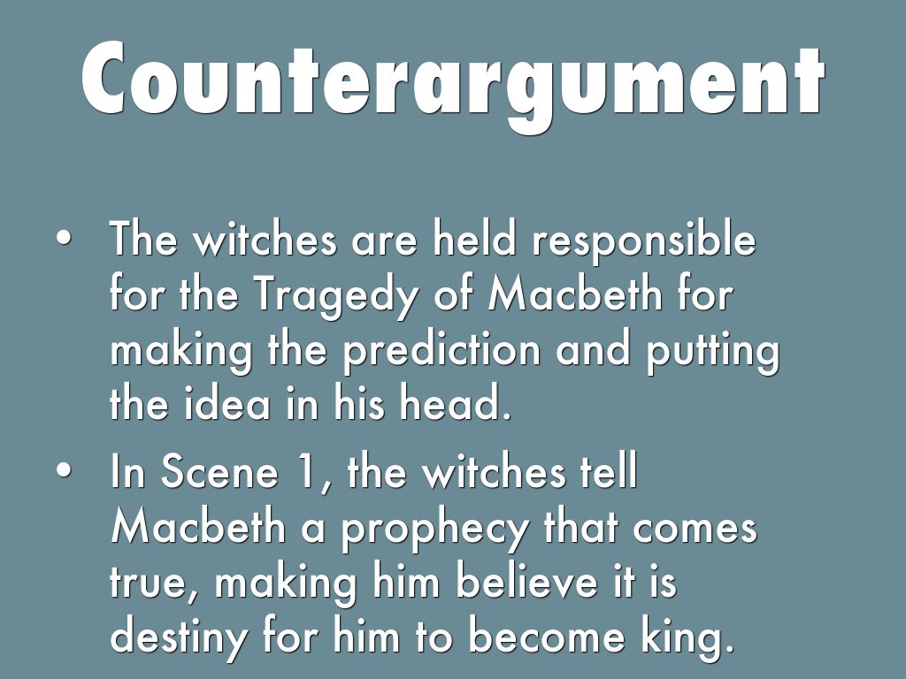 The witches are held responsible for the Tragedy of Macbeth for making the prediction and putting the idea in his head.