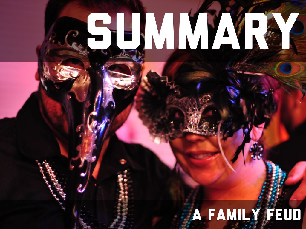 Romeo Montague wants to go to the party to see Rosaline, a girl he likes. Because of the feud, his family is not invited. He wears a costume and sneaks into the party anyway.