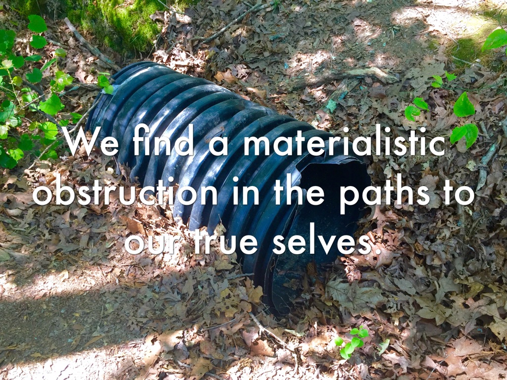 We find a materialistic obstruction in the paths to our true selves.