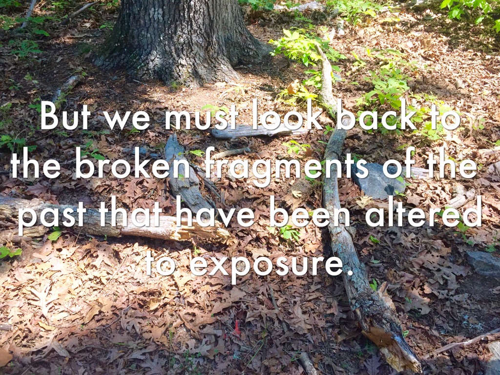 But we must look back to the broken fragments of the past that have been altered to exposure.