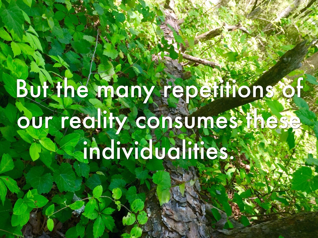 But the many repetitions of our reality consumes these individualities.