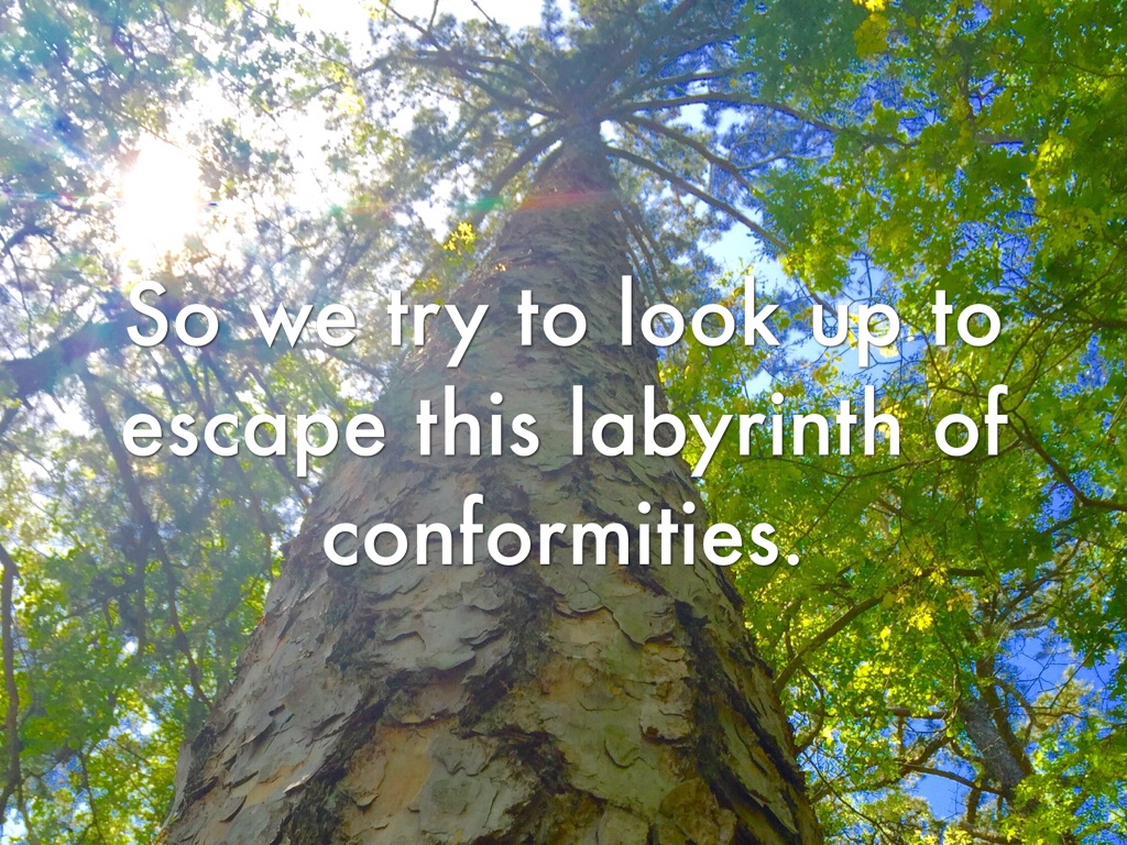 So we try to look up to escape this labyrinth of conformities.