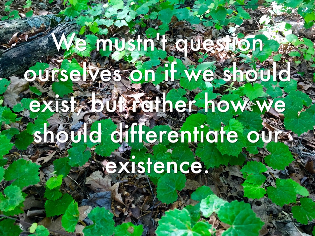 We mustn't question ourselves on if we should exist, but rather how we should differentiate our existence.