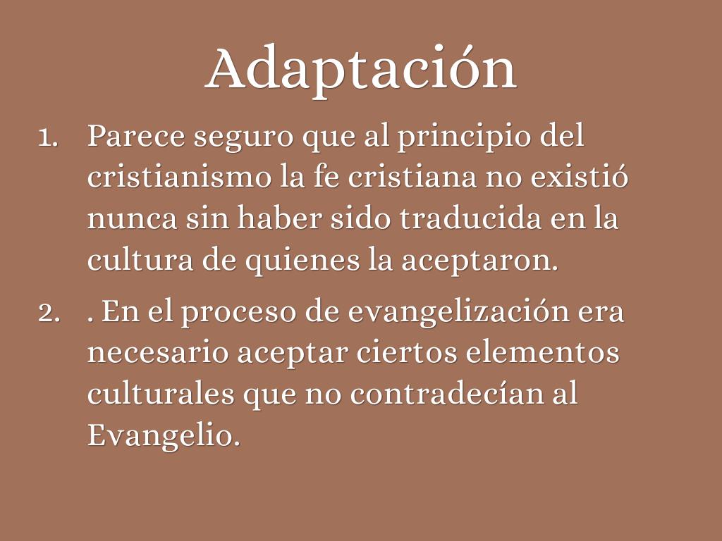 - . En el proceso de evangelización era necesario aceptar ciertos elementos culturales que no contradecían al Evangelio.