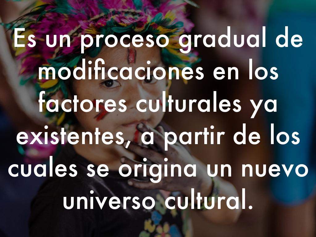 Es un proceso gradual de modificaciones en los factores culturales ya existentes, a partir de los cuales se origina un nuevo universo cultural.