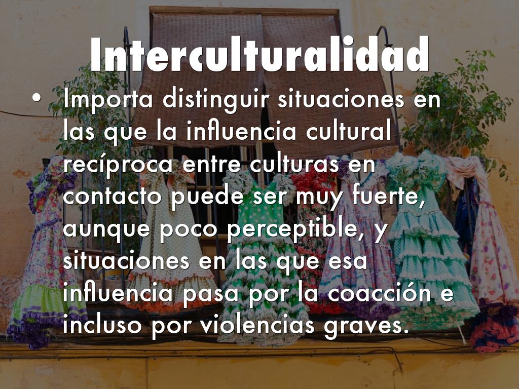 Importa distinguir situaciones en las que la influencia cultural recíproca entre culturas en contacto puede ser muy fuerte, aunque poco perceptible, y situaciones en las que esa influencia pasa por la coacción e incluso por violencias graves.