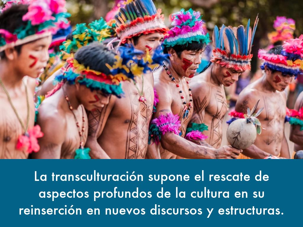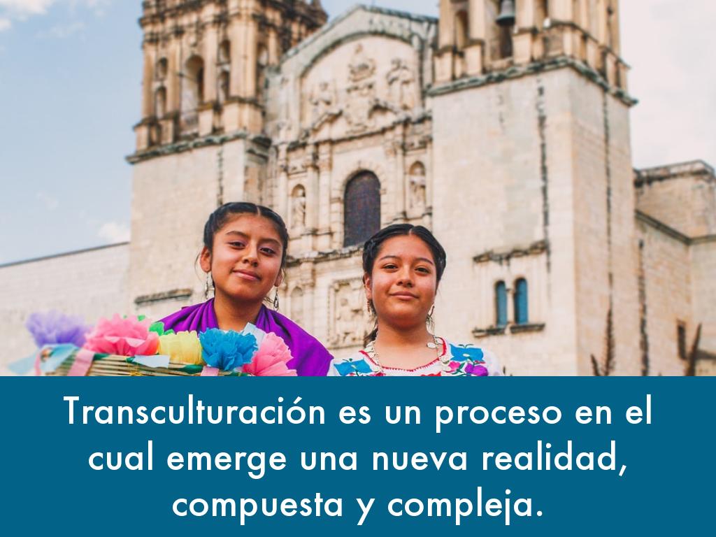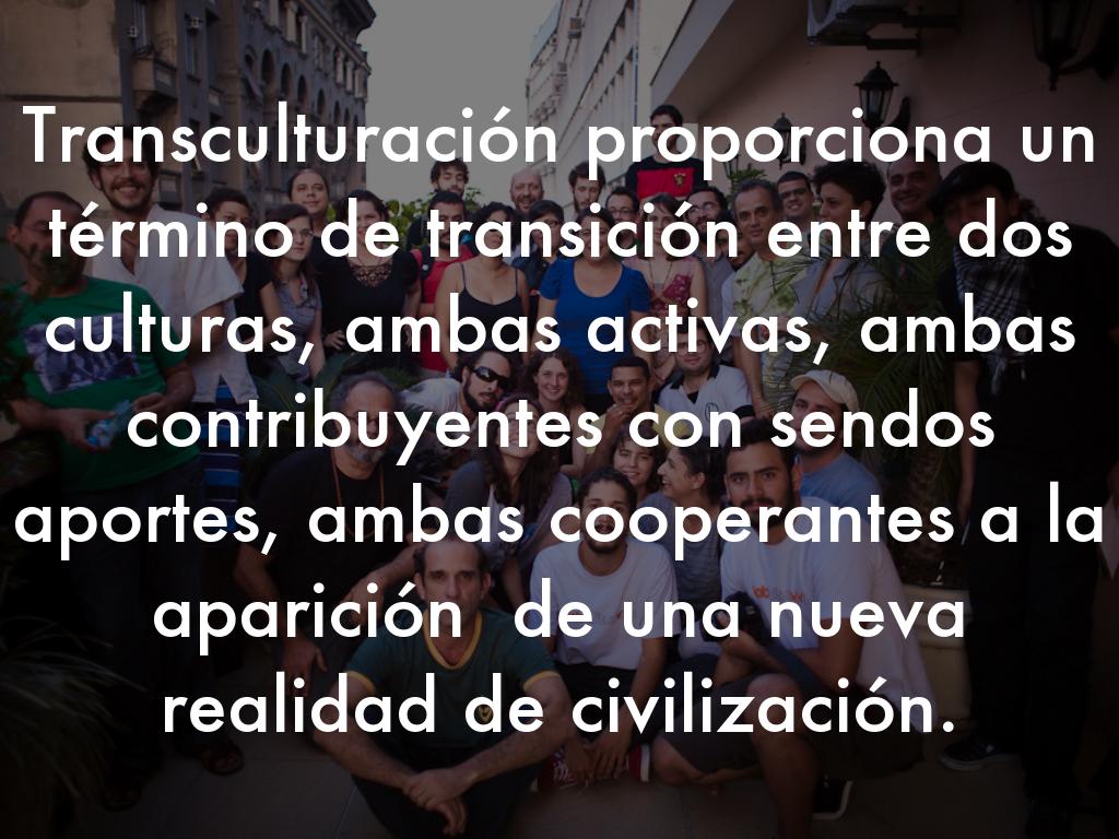 Transculturación proporciona un término de transición entre dos culturas, ambas activas, ambas contribuyentes con sendos aportes, ambas cooperantes a la aparición de una nueva realidad de civilización.