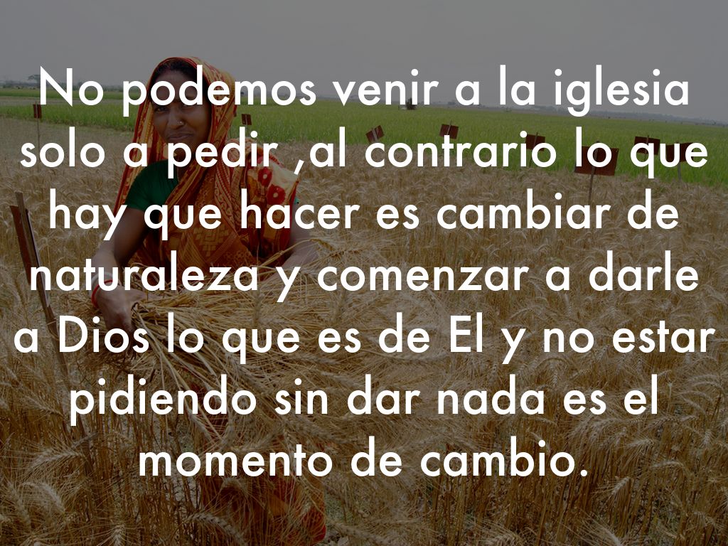 No podemos venir a la iglesia solo a pedir ,al contrario lo que hay que hacer es cambiar de naturaleza y comenzar a darle a Dios lo que es de El y no estar pidiendo sin dar nada es el momento de cambio.