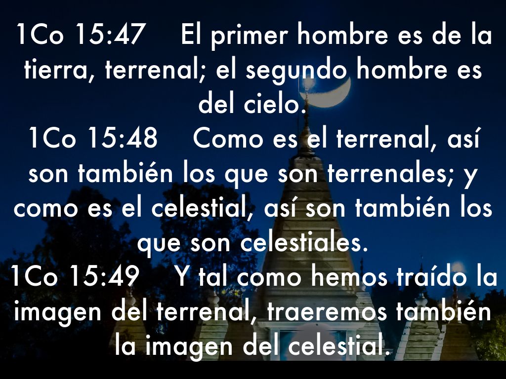 1Co 15:48 Como es el terrenal, así son también los que son terrenales; y como es el celestial, así son también los que son celestiales.