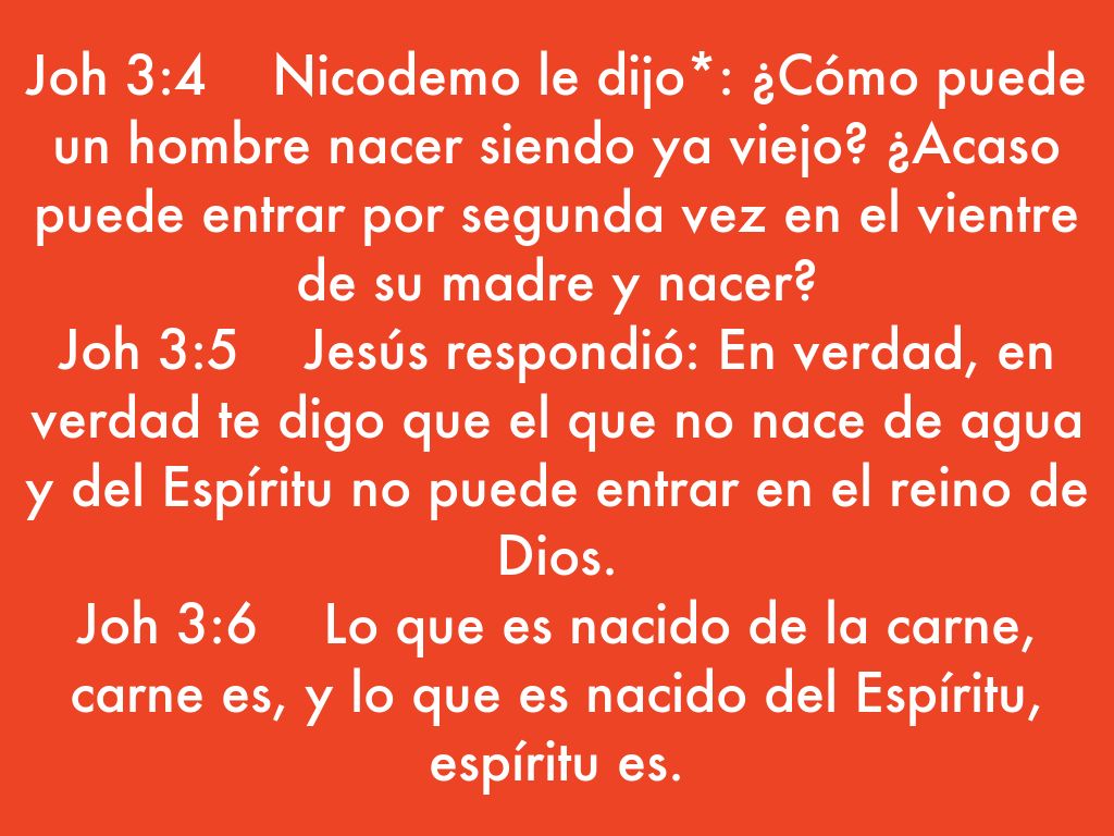 Joh 3:4 Nicodemo le dijo*: ¿Cómo puede un hombre nacer siendo ya viejo? ¿Acaso puede entrar por segunda vez en el vientre de su madre y nacer?