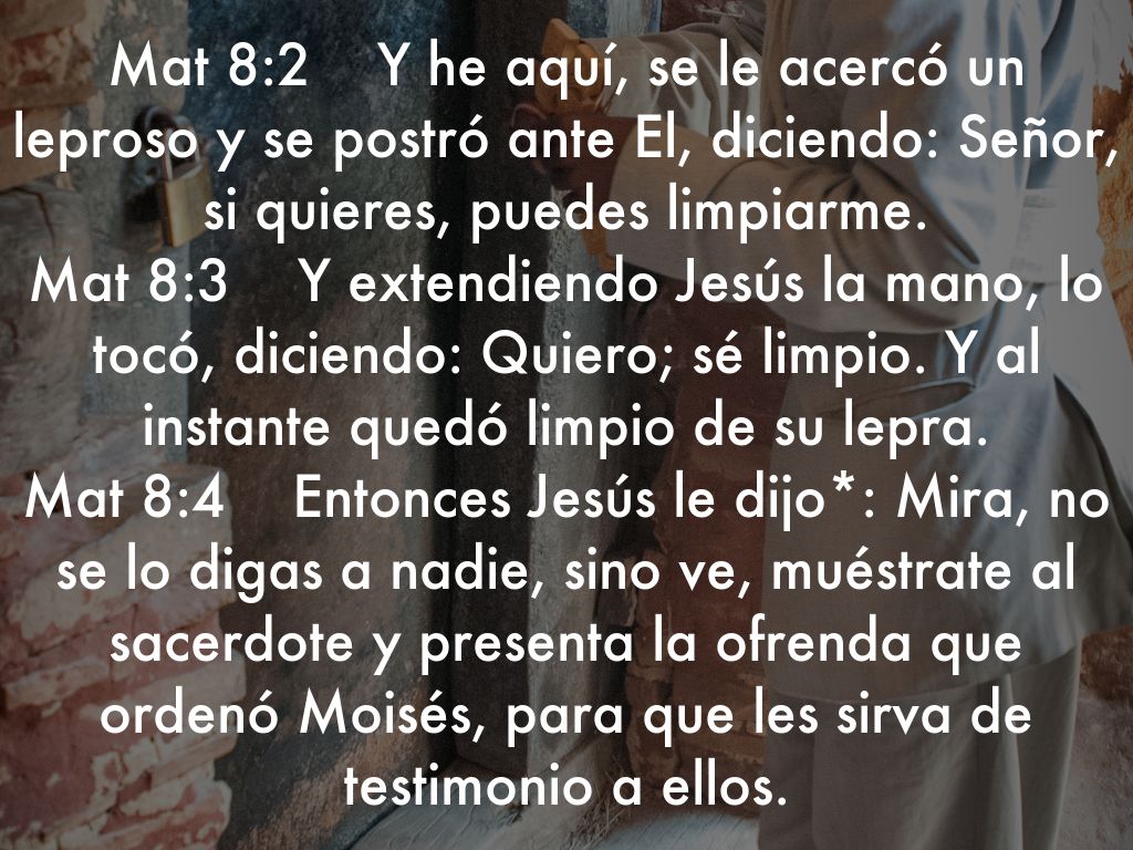 Mat 8:2 Y he aquí, se le acercó un leproso y se postró ante El, diciendo: Señor, si quieres, puedes limpiarme.