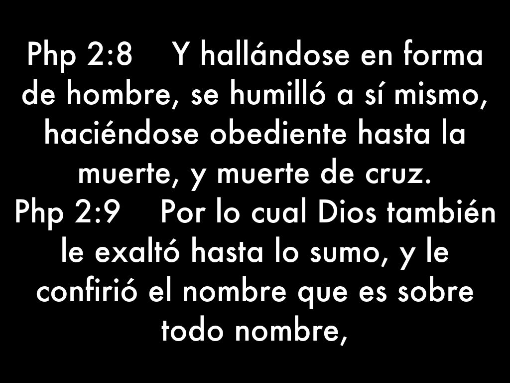 Php 2:8 Y hallándose en forma de hombre, se humilló a sí mismo, haciéndose obediente hasta la muerte, y muerte de cruz.