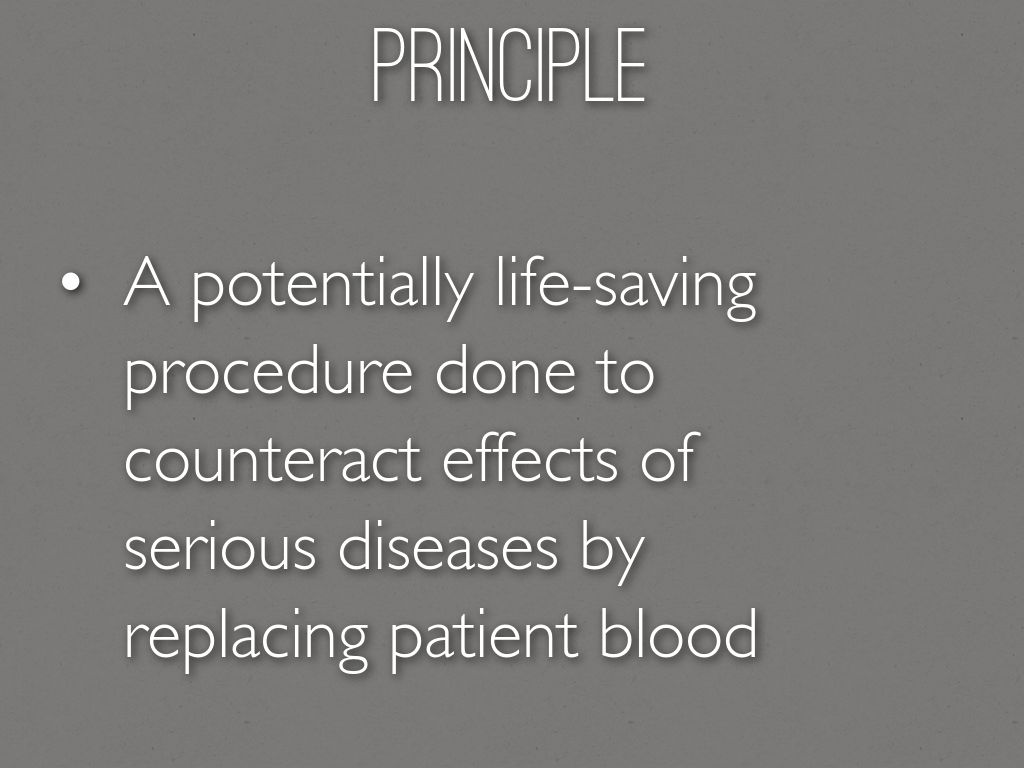A slightly larger amount of fresh, prewarmed blood/plasma flows into the patient's body. This cycle is repeated until the correct volume of blood has been replaced.
