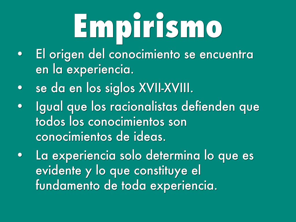 - El origen del conocimiento se encuentra en la experiencia.
