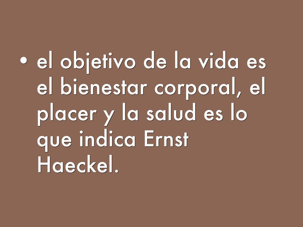 - el objetivo de la vida es el bienestar corporal, el placer y la salud es lo que indica Ernst Haeckel.