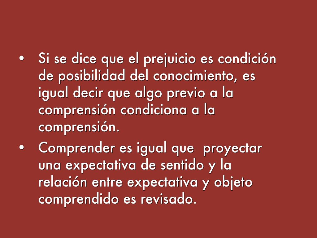 - Si se dice que el prejuicio es condición de posibilidad del conocimiento, es igual decir que algo previo a la comprensión condiciona a la comprensión.