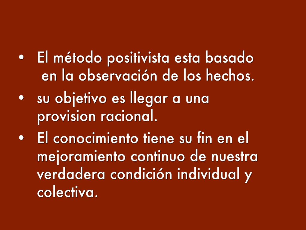 - El método positivista esta basado en la observación de los hechos.