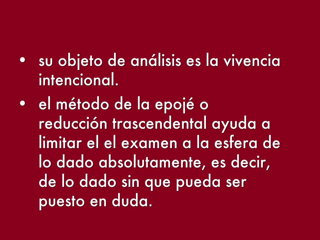 - el método de la epojé o reducción trascendental ayuda a limitar el el examen a la esfera de lo dado absolutamente, es decir, de lo dado sin que pueda ser puesto en duda.
