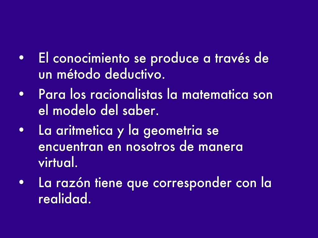 - El conocimiento se produce a través de un método deductivo.