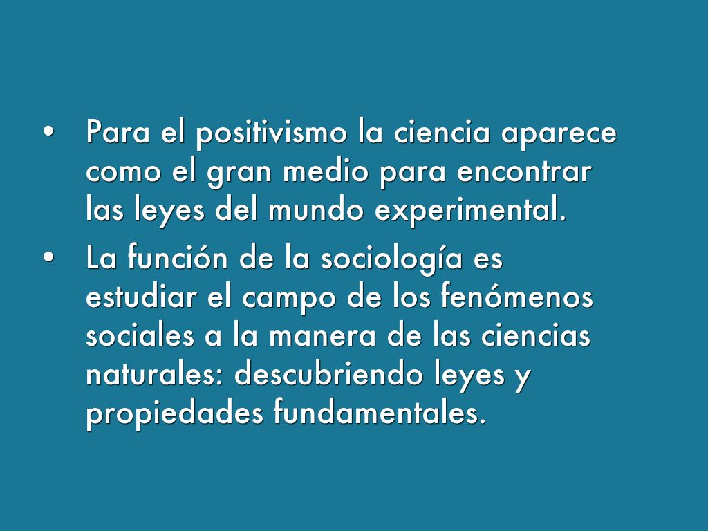 - La función de la sociología es estudiar el campo de los fenómenos sociales a la manera de las ciencias naturales: descubriendo leyes y propiedades fundamentales.