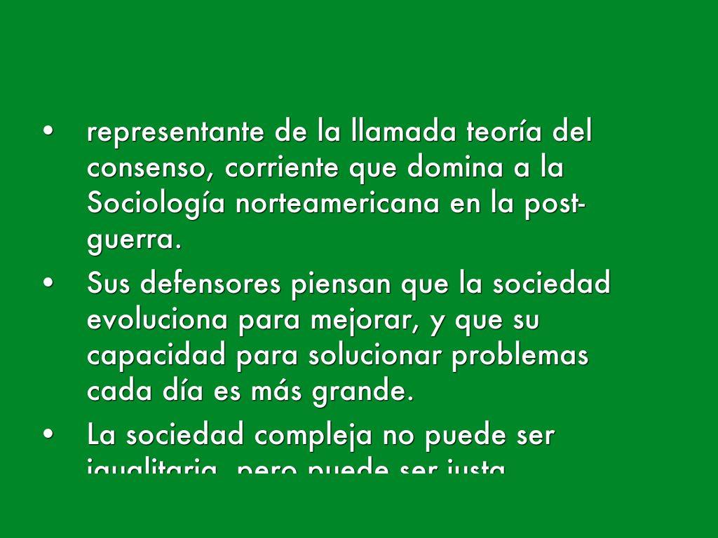 - representante de la llamada teoría del consenso, corriente que domina a la Sociología norteamericana en la post-guerra.