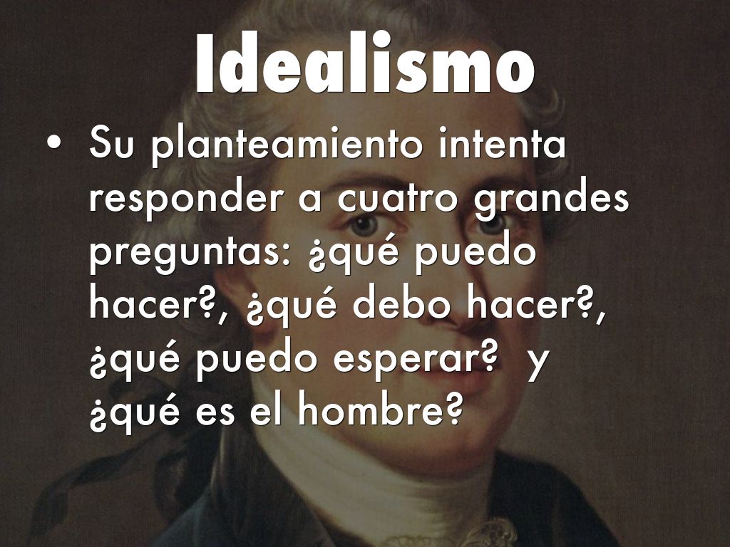 - Su planteamiento intenta responder a cuatro grandes preguntas: ¿qué puedo hacer?, ¿qué debo hacer?, ¿qué puedo esperar? y ¿qué es el hombre?