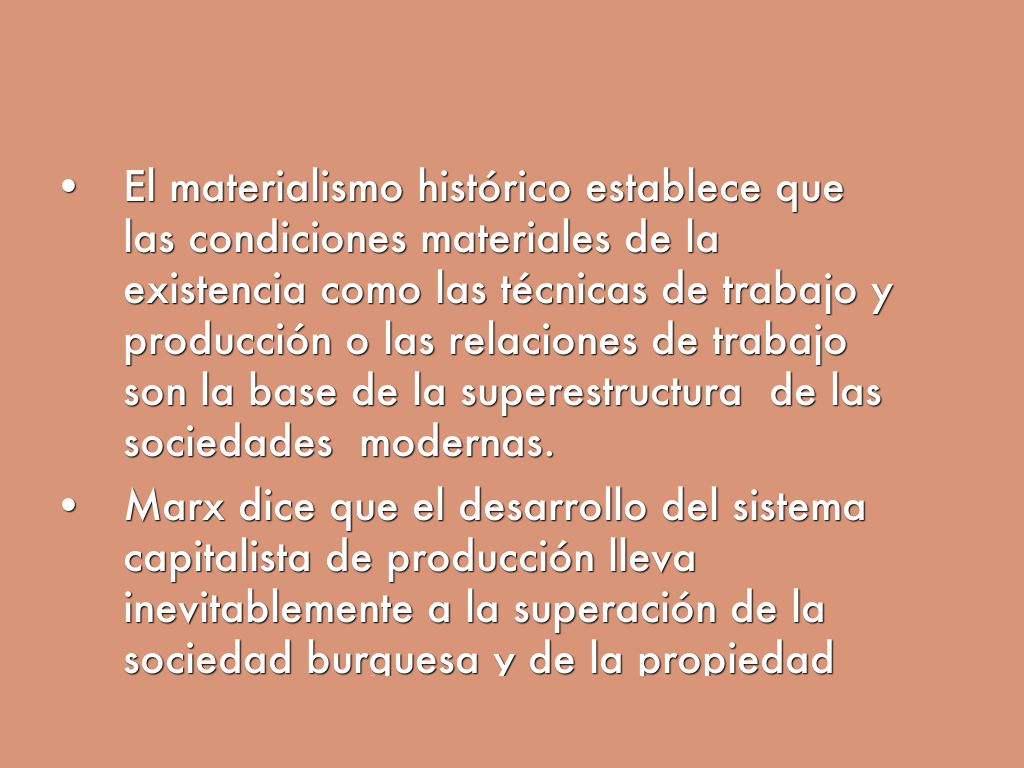- Marx dice que el desarrollo del sistema capitalista de producción lleva inevitablemente a la superación de la sociedad burguesa y de la propiedad privada.