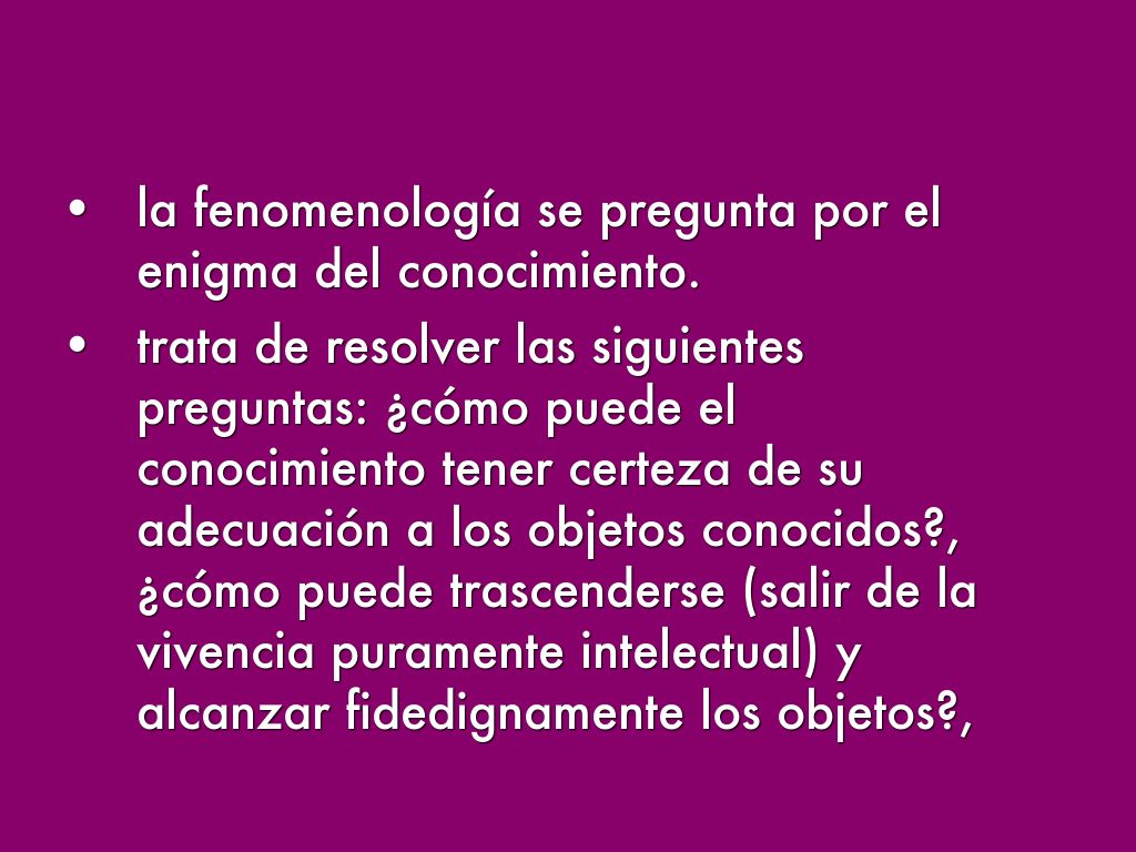 - la fenomenología se pregunta por el enigma del conocimiento.