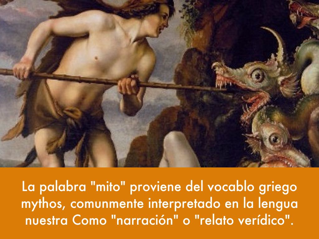 La palabra "mito" proviene del vocablo griego mythos, comunmente interpretado en la lengua nuestra Como "narración" o "relato verídico".