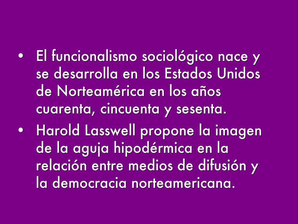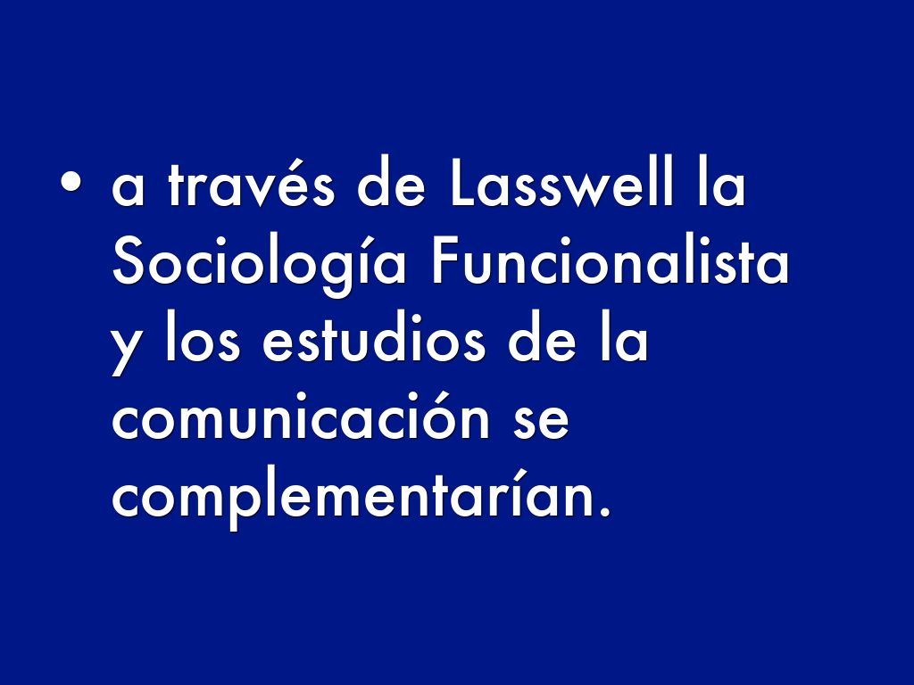 - a través de Lasswell la Sociología Funcionalista y los estudios de la comunicación se complementarían.