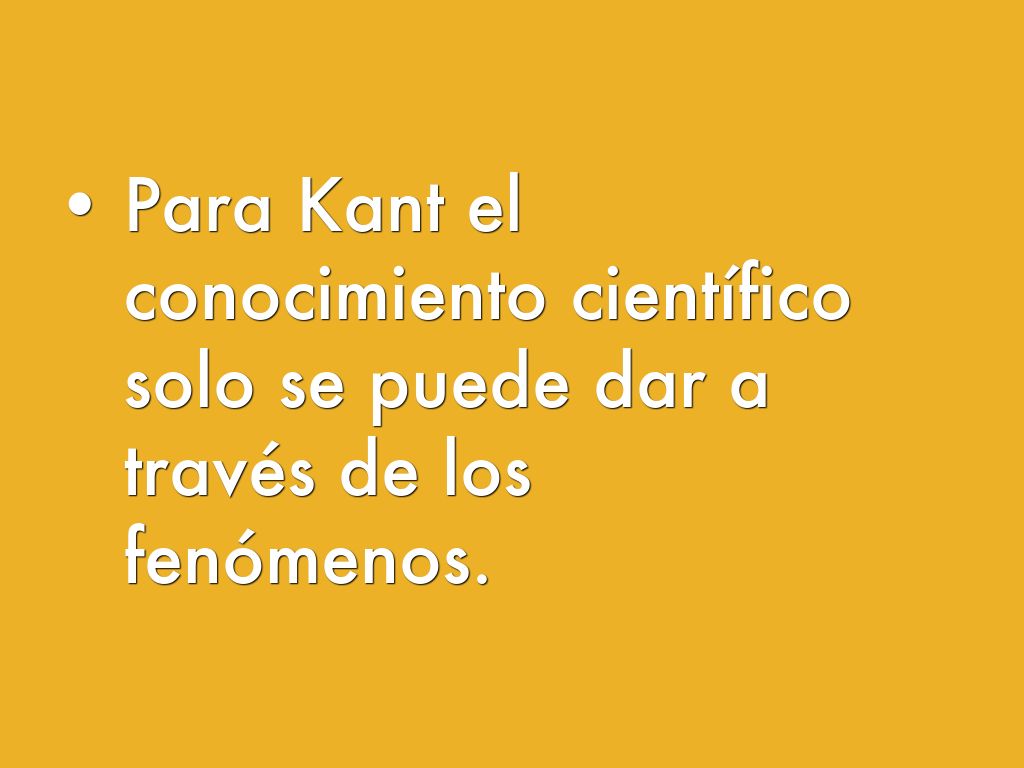 - Para Kant el conocimiento científico solo se puede dar a través de los fenómenos.