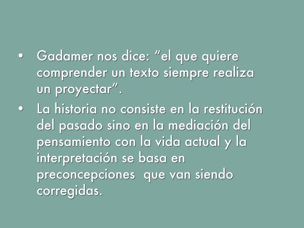 - Gadamer nos dice: “el que quiere comprender un texto siempre realiza un proyectar”.