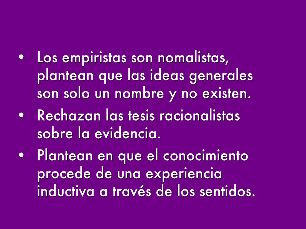 - Los empiristas son nomalistas, plantean que las ideas generales son solo un nombre y no existen.