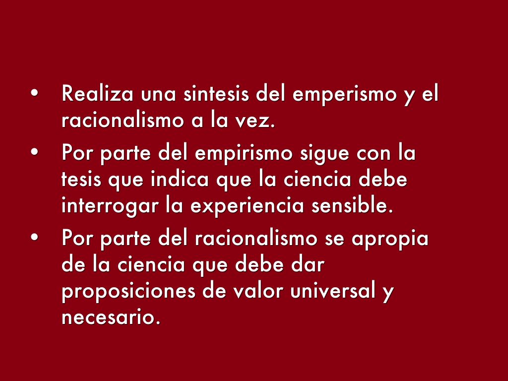 - Realiza una sintesis del emperismo y el racionalismo a la vez.